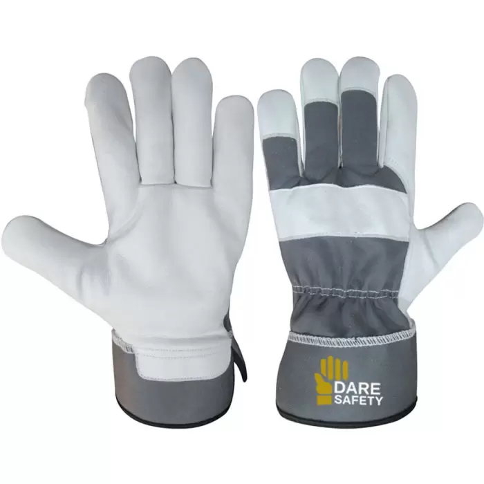 Canadian Rigger Glove, Palm made of natural cow split leather back printed fabric, 3 finger tips and knuckle strap, rubberized cuff with piping on edge.